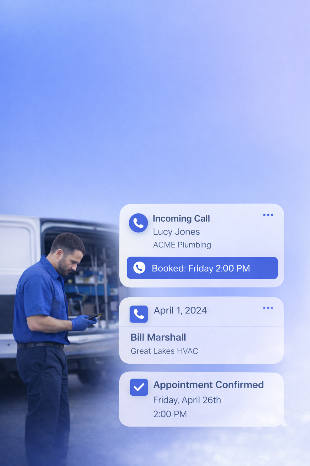 BlueDesk answers your calls 24/7 and books jobs directly into your calendar so you capture more work without hiring another office manager